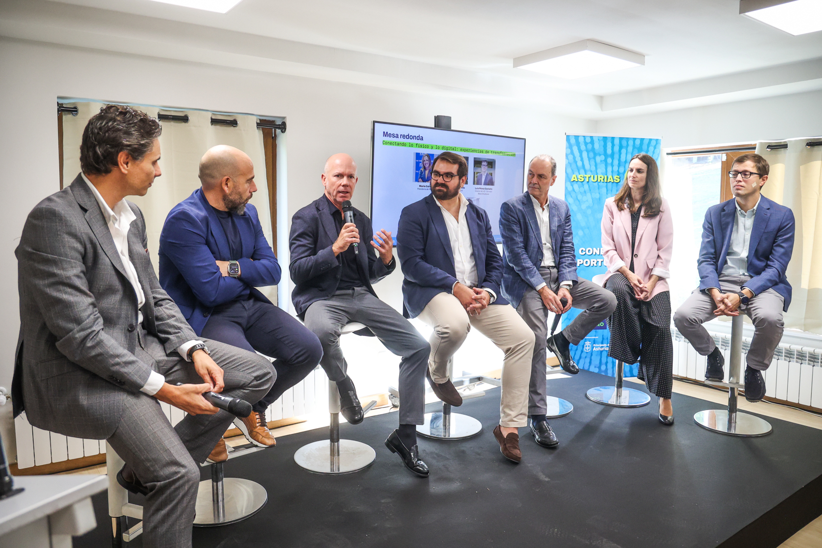 Después de la charla de Llavero, el protagonismo pasó a la mesa redonda, conducida por Alejandro Alija y protagonizada por Alberto González, director general de la Federación Asturiana De Empresarios (FADE); Richard Villaverde, CIO de CAPSA Food; Luis Pérez, director de I+D en Gonvarri Metal Structures; Isabel Caviedes, managing director de Alhona; y Salvador Bohigas, CEO de MSI Digital Builders.