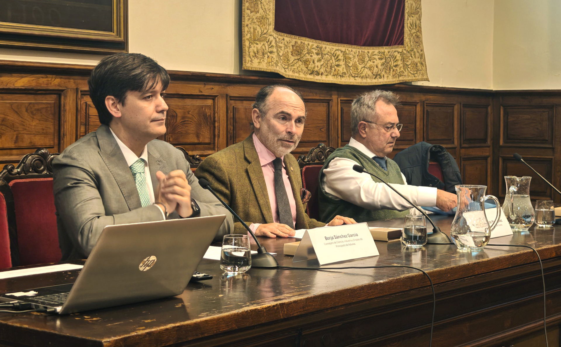 El consejero de Ciencia, Industria y Empleo, Borja Sánchez, y el rector de la Universidad de Oviedo, Ignacio Villaverde, han participado hoy en la presentación de las actividades de esta cátedra, dirigida por Antonio López Cerezo. El órgano es fruto de la colaboración entre el Principado, a través de la Fundación para el Fomento de la Investigación Científica y Tecnológica (Ficyt), y la institución académica, y nace con el objetivo de promover la cultura científica y reforzar el sistema asturiano de ciencia, tecnología e innovación.