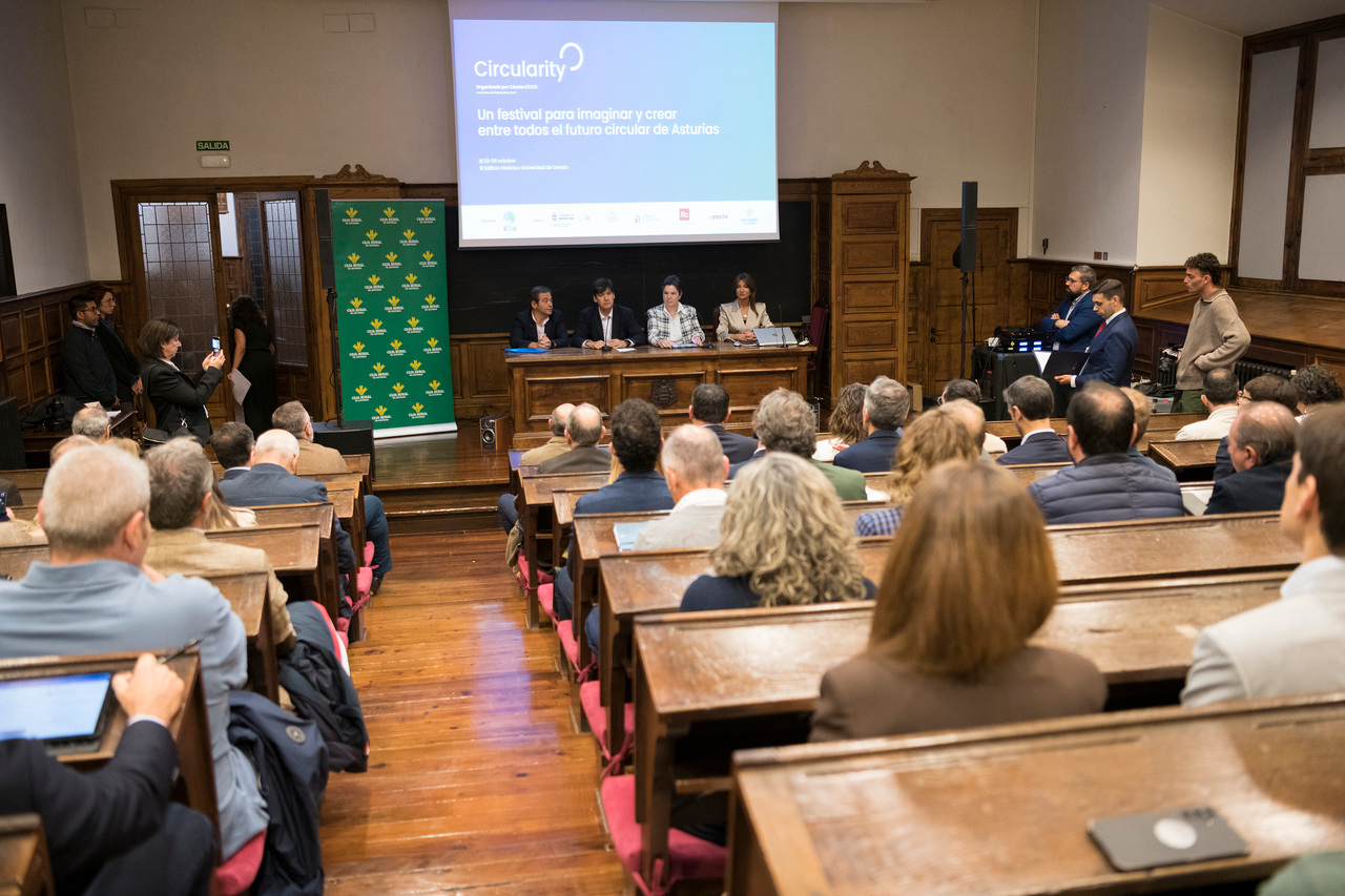 El edificio histórico de la Universidad de Oviedo fue el escenario elegido del 23 al 26 de octubre para acoger Circularity, un evento organizado por el Cluster ECCO que reunió a profesionales, estudiantes y a la sociedad en general para avanzar hacia un desarrollo sostenible y colaborativo en la región. El objetivo es lograr la transición hacia una economía circular en Asturias sin perder de vista su identidad industrial.
