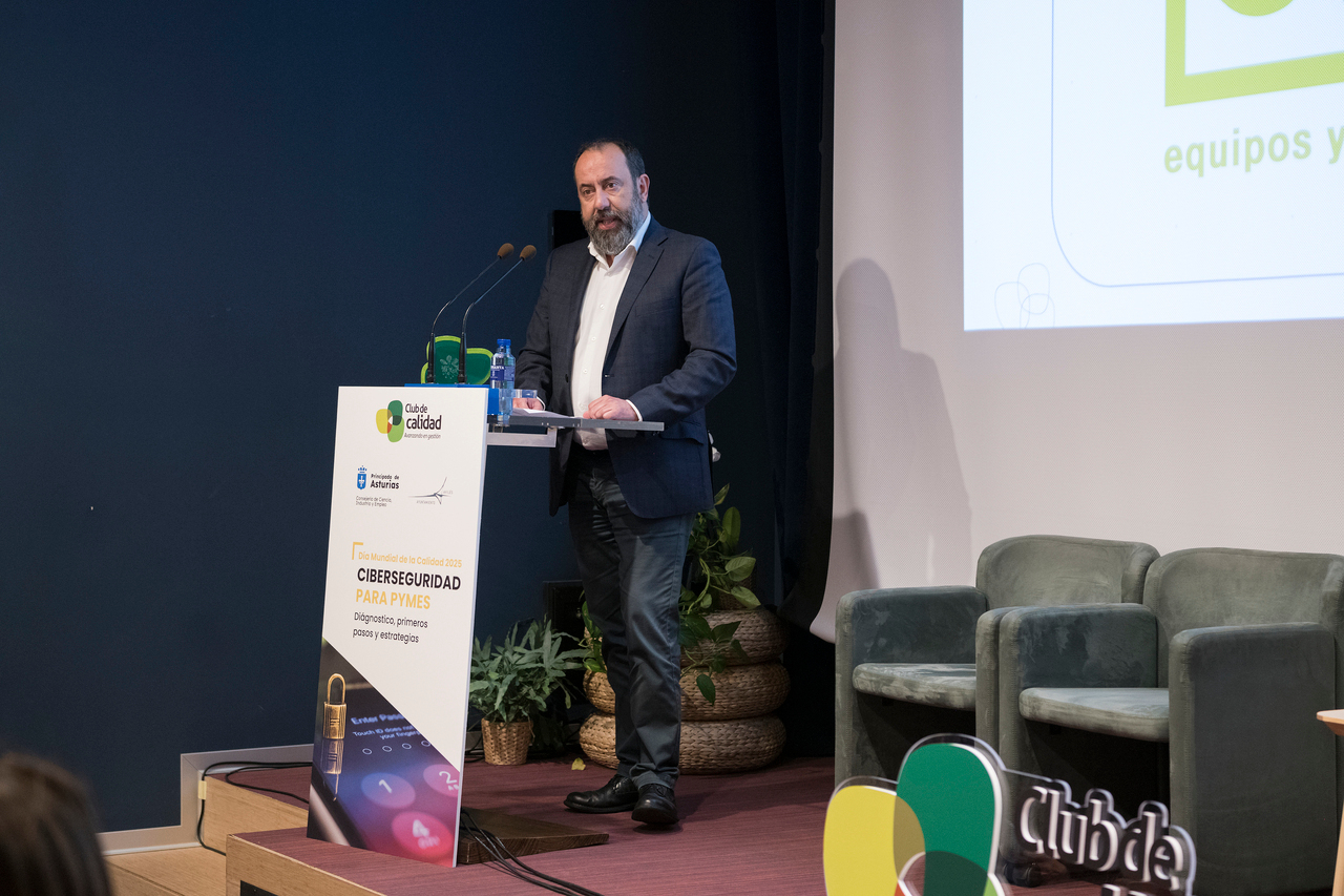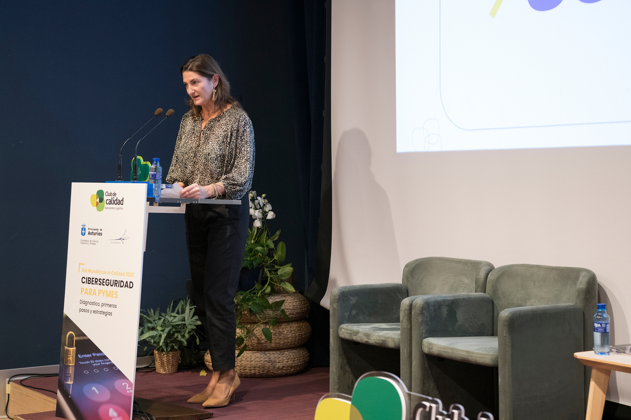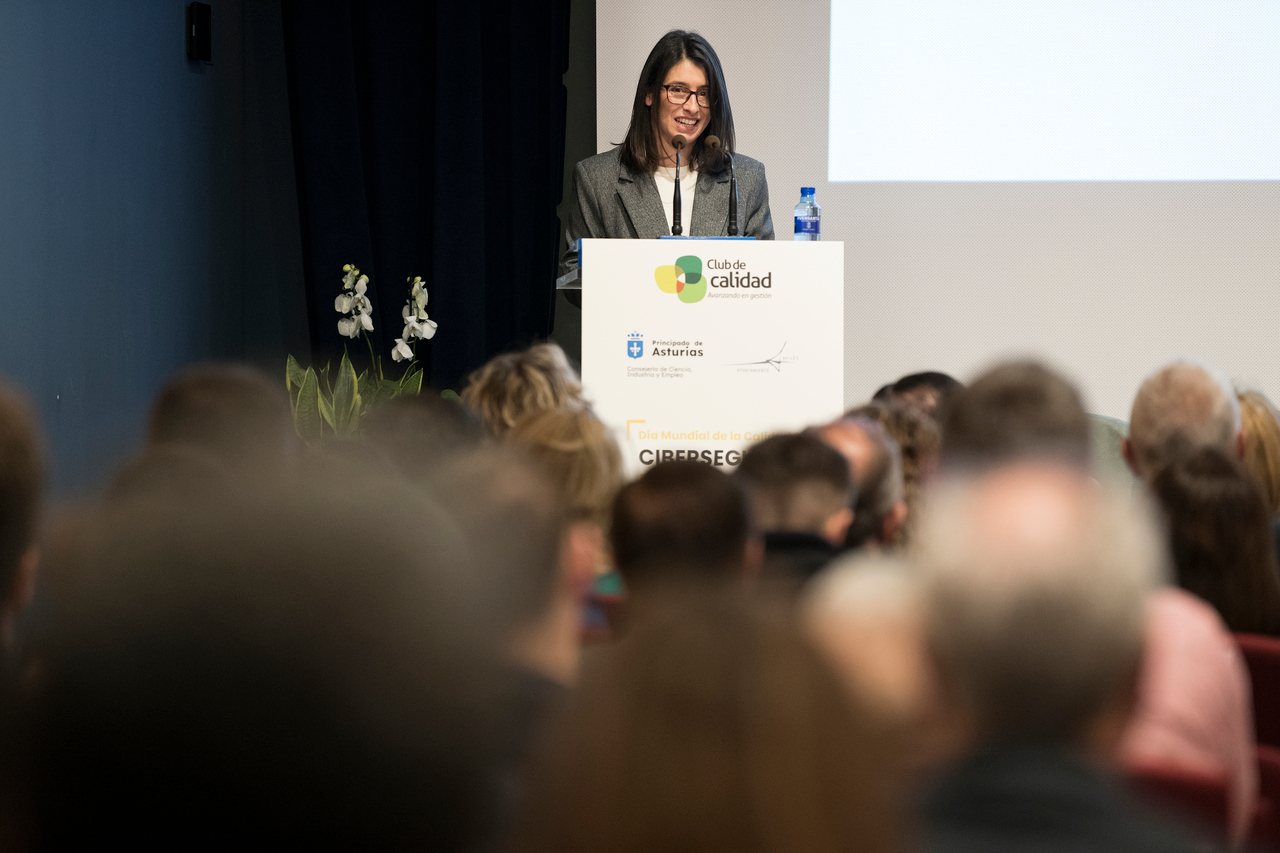 El pasado viernes 14 de noviembre, la Casa de la Cultura de Avilés se llenó de historias, experiencias y miradas al futuro en una edición muy especial del Día Mundial de la Calidad. El Club de Calidad de Asturias quiso convertir la efeméride en un homenaje a su trayectoria y en una llamada a la acción con la temática propuesta: ‘Ciberseguridad para pymes’. El encuentro comenzó con emoción contenida. Además de ser este 2025 el 30 aniversario de la entidad, el encuentro supuso el primer acto público de María Montes como gerente del Club, quien con naturalidad reconoció la dimensión del momento: “Hoy me toca hacer de maestra de ceremonias en mi primer día, y pocas ocasiones mejores que esta para celebrar lo que somos: inspiración, reconocimiento y compromiso con la excelencia”.